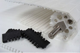 塑料模組網(wǎng)帶又稱為塑料模塊帶、塑料鏈板、模組網(wǎng)帶,是由塑料模塊和插銷組合拼裝而成,通過匹配的鏈輪做驅(qū)動。